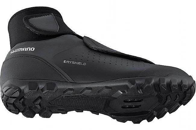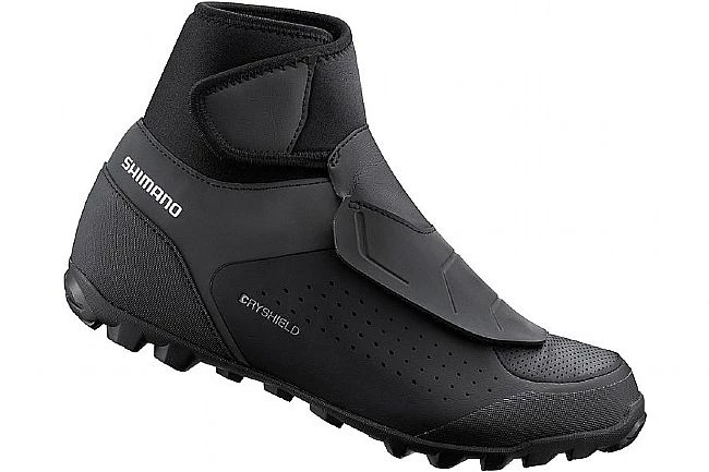Years of experience riding through cold, wet and nasty weather have informed the design behind Shimano’s SH–MW501 shoe. Shimano has used a high ankle design that starts with a neoprene cuff which is connected to a lace–shield made out of tough, synthetic leather designed to keep the weather out. Underneath the lace–shield, Shimano’s speed lacing system allows for fast, easy adjustments to keep the boot snug. DRYSHIELD membrane has been used to give the SH–MW501 a superior performance against cold and wet weather. The tough, rubber outsole has aggressive tread to keep you stable off the bike. A stiff but non-restrictive sole keeps power transfer more efficient than a regular boot. Fleece lining keeps the boots cozy while 360–degree reflective elements keep you visible and safe when the light is less than ideal.