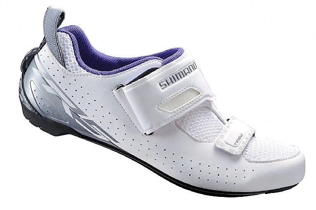 The Shimano Women’s SH-TR5W Tri Shoes provide comfort and performance inspired by the higher-end TR9 triathlon shoe. Comfort is foremost for the long cycling leg of a race, so the TR5W features a women’s-specific design and a 3D breathable mesh upper. Dynalast construction puts the foot the prime position for optimum pedaling efficiency, and the fiberglass-reinforced nylon sole blends stiffness and compliance. To aid in transitions, a T1 Quick Strap is fast to adjust and can be trimmed to the rider’s desired length, and an asymmetrical pull tab stays open so it’s easy to reach without fumbling.